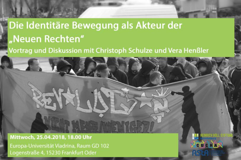 Mit Christoph Schulze und Vera Henßler reden wir über die Entwicklung der „Neuen Rechten“, mit einem besonderen Fokus auf die „Identitäre Bewegung“ und das Land Brandenburg. Wer sind die Akteure? Wie sind sie vernetzt und wofür stehen sie? Was sind ihre Strategien und Ziele und wiekann man ihnen entgegentreten?