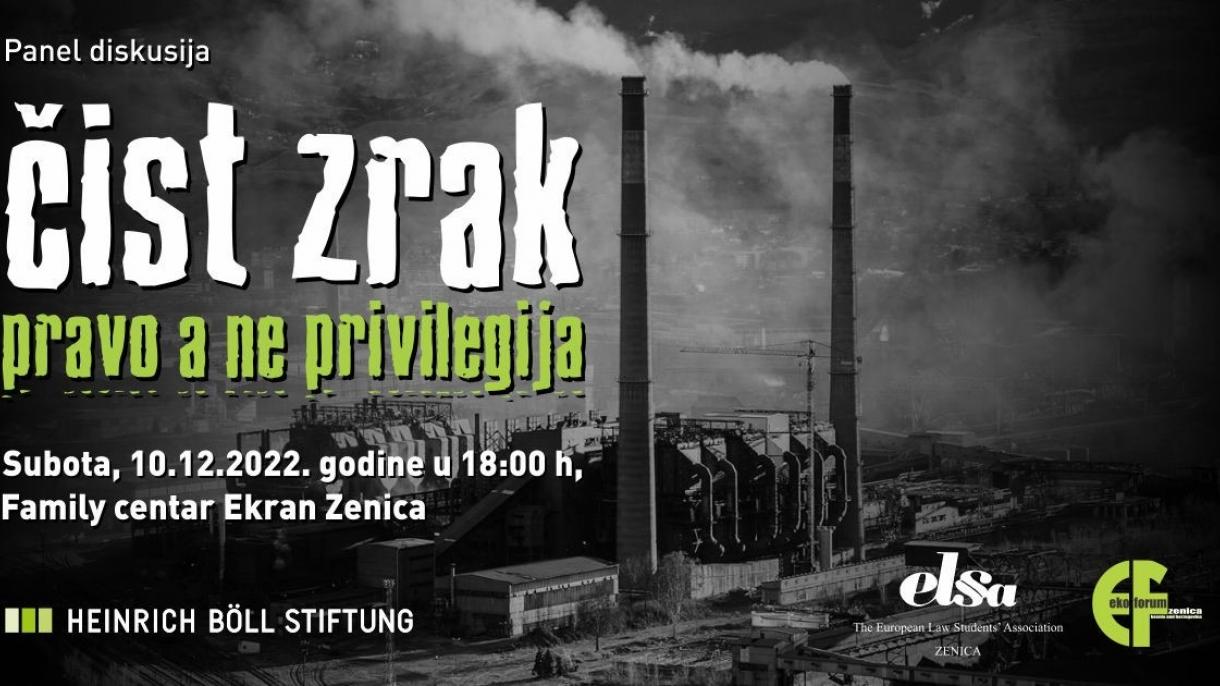 Udruženja Eko forum Zenica, ELSA Zenica i fondacija Heinrich-Böll-Stiftung Sarajevo, u povodu Međunarodnog dana ljudskih prava, organizuju projekciju nagrađivanog dokumentarnog filma "Transforming tomorrow" i panel diskusiju na temu čistog zraka kao ljudskog prava.