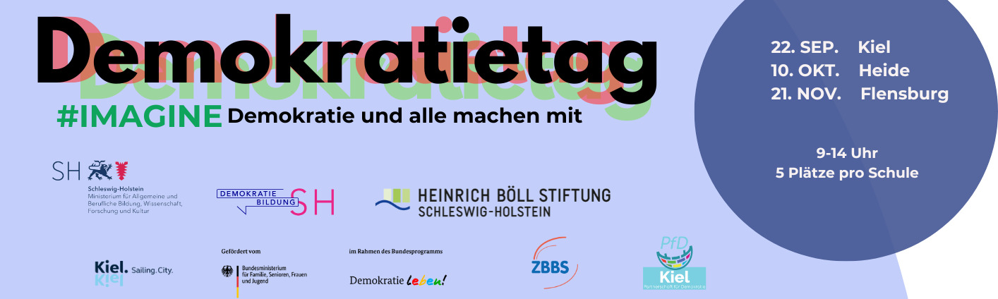 - In der Anmeldemaske findest du zunächst eine Aufzählung unserer Demokratietage in Kiel (22.09.), Heide (10.10.) und Flensburg (21.11.). Unter jedem Tag findest du dann die Auswahl der Workshops, die an diesem Tag angeboten werden. Merke dir die Workshops, die dich am meisten interessieren.