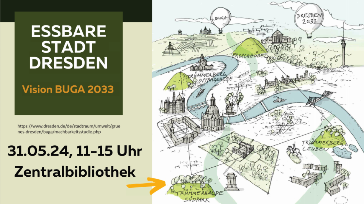 Über den Büger*innen-Beteiligungsprozess im Jahr 2023 wurde die "Essbare Stadt" als eines der Leitthemen für die BUGA 2033 in Dresden etabliert. Bisher wurde im Kernareal Südpark die "Essbare Stadt" als Leitthema kommuniziert und in der Machbarkeitsskizze ein Ausstellungsbereich für die "Essbare Stadt" vermerkt.