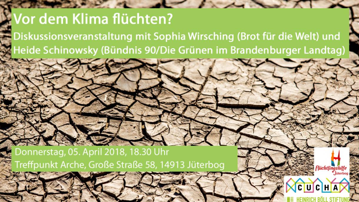 Die Referentin Sophia Wirsching wird zunächst in die Thematik einführen und den komplexen Zusammenhängen von Klimawandelfolgenveränderungen sowie politischen und ökonomischen Flucht- und Migrationsgründen nachgehen. Zudem erläutert sie die rechtliche Unterscheidung in Flucht und Migration und gibt einen Einblick in die aktuelle Rechtspraxis. Heide Schinowsky wird den Vortrag um ihr Statement ergänzen und dabei insbesondere auf energiepolitische Konsequenzen für Deutschland und Brandenburg eingehen. In der anschließenden Diskussion möchten wir mit den beiden Referentinnen sowie Ihnen ins Gespräch kommen. Es bleibt Raum für Ihre Fragen und Kommentare.