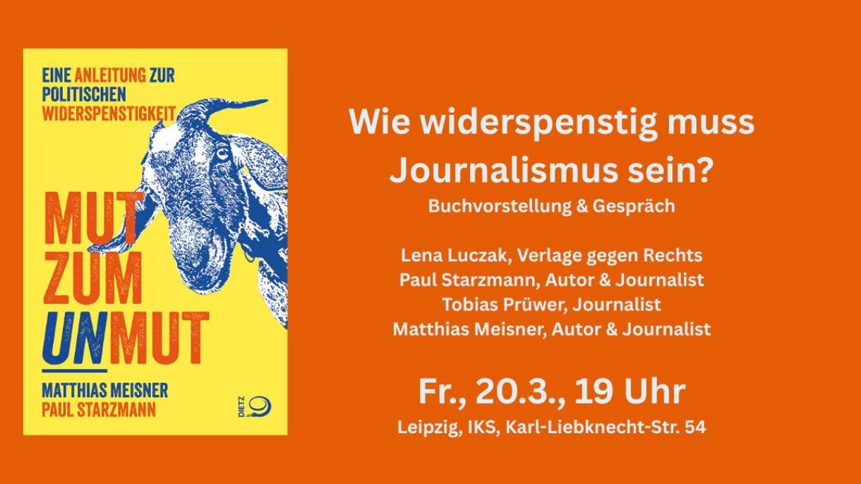 Auf der Veranstaltung geht es darum, wie Journalist*innen, Autor*innen und Mitarbeiter*innen von Verlagen renitent sein können, was es dafür braucht und was das kann. Wir sprechen über das vermeintliche Neutralitätsgebot, kritische Berichterstattung und politische Haltung und Allianzen.