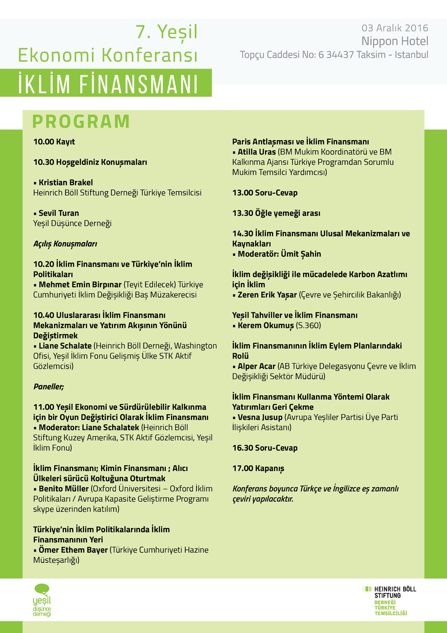İklim finansmanı konusunu daha iyi anlamak ve tartışmalara katkıda bulunmak isteyen herkesi Heinrich Böll Stiftung Derneği Türkiye Temsilciliği ve Yeşil Düşünce Derneği olarak birlikte düzenlediğimiz Yeşil Ekonomi konferansını izlemeye davet ediyoruz.