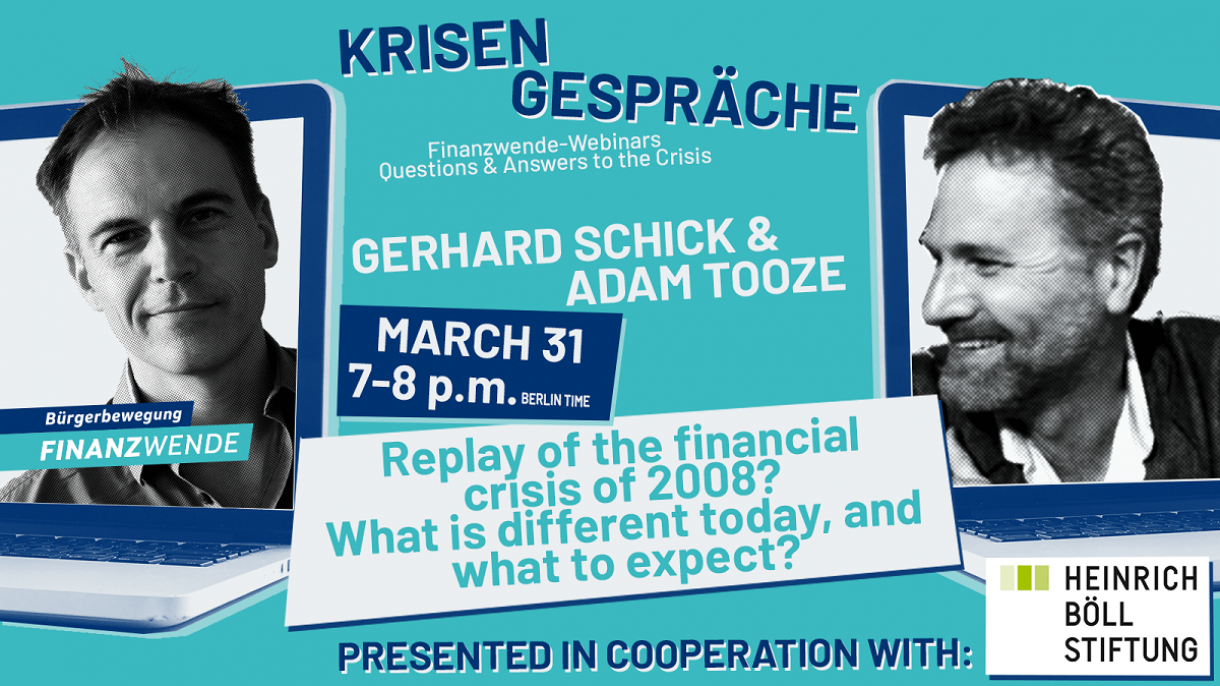 This event is brought to you by the project “Transformative Responses to the Crisis”, organised by Bürgerbewegung Finanzwende in collaboration with Heinrich Böll Stiftung. The project aims at generating and advancing ideas on how to cope with the unfolding global crisis in such a way that we advance a more sustainable, equitable and resilient economy on the way.