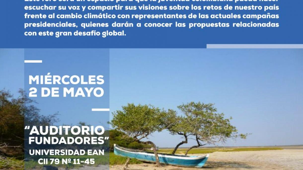 Este foro será un espacio para que la juventud colombiana pueda hacer escuchar su voz y compartir sus visiones sobre los retos de nuestro país frente al cambio climático, con representantes de las actuales campañas presidenciales, quienes darán a conocer las propuestas relacionadas con este gran desafío global.