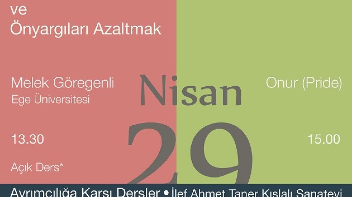 Ankara Üniversitesi İletişimliler Vakfı, Heinrich Böll Stiftung Derneği Türkiye Temsilciliğinin katkılarıyla sürdürdüğü “Ayrımcılığa Karşı Dersler” devam ediyor. 29 Nisan 2016 tarihinde Ege Üniversitesinden Melek Göregenli ile “Ayrımcılıkla Mücadele ve Önyargıları Azaltmak” başlıklı açık ders yapılacaktır. Saat 15.00’de Onur (Pride) film gösterimi ile devam edecek olan program saat saat 13.30’da Ahmet Taner Kışlalı Sanatevinde gerçekleştirilecektir.