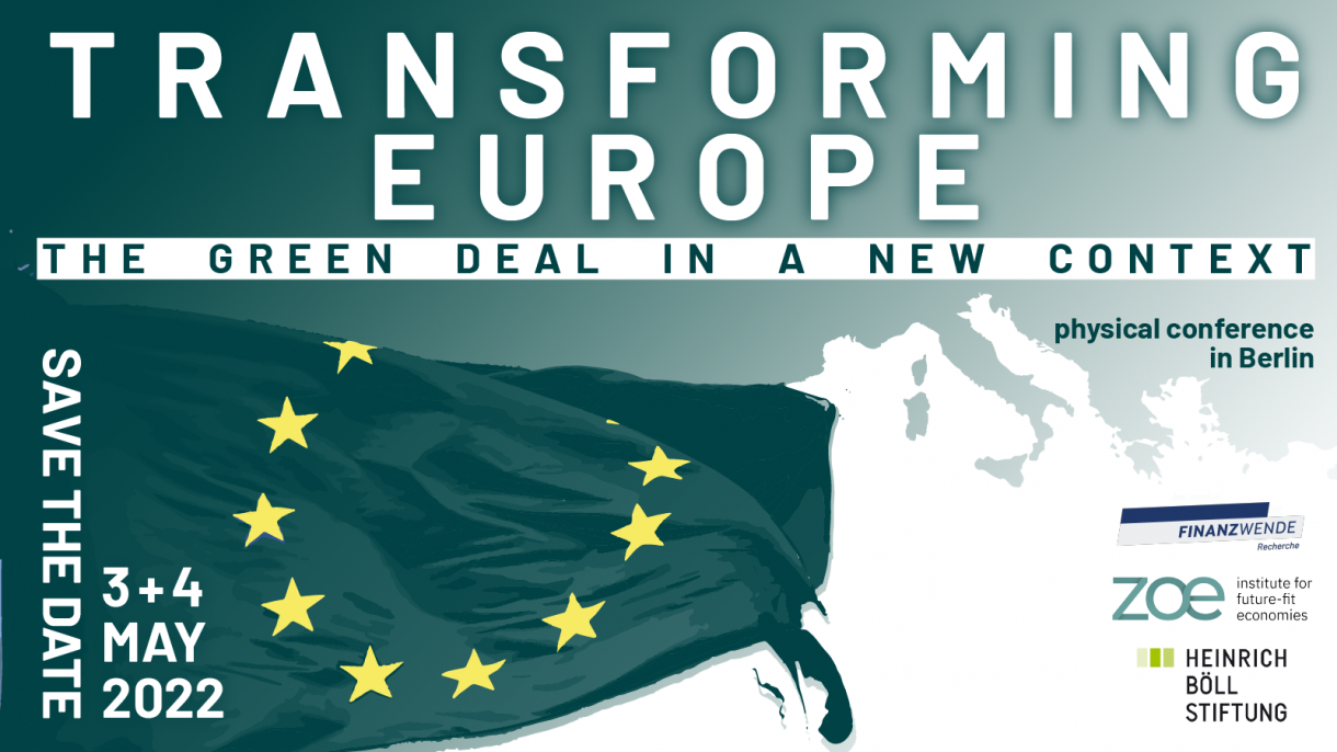 With this conference, Heinrich-Böll-Foundation, Finanzwende Recherche and ZOE. Institute for future-fit economies want to explore the interdependencies between the different domains of policymaking and between environmental and social agendas and thereby define a European agenda beyond the EU Green Deal.