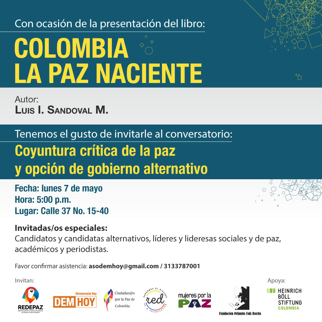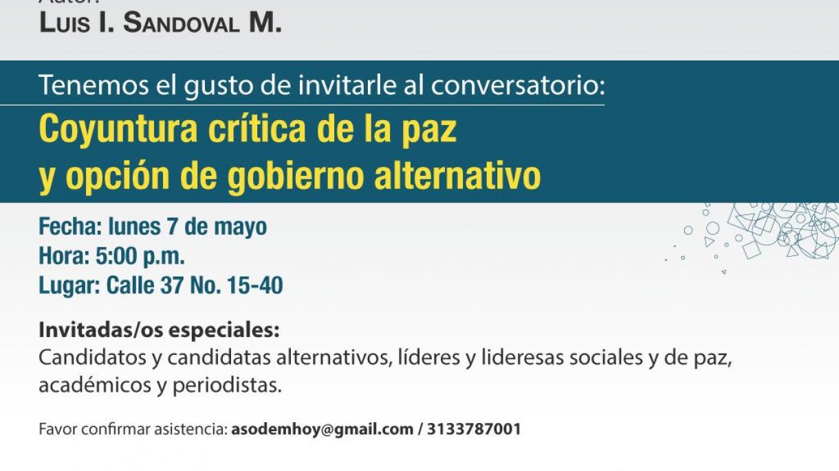 Con la ocasión de la presentación del libro: Colombia Paz Naciente de Luis Ignacio Sandoval, le invitamos al conversatorio: "Coyuntura crítica de la paz y opción de gobierno alternativo"