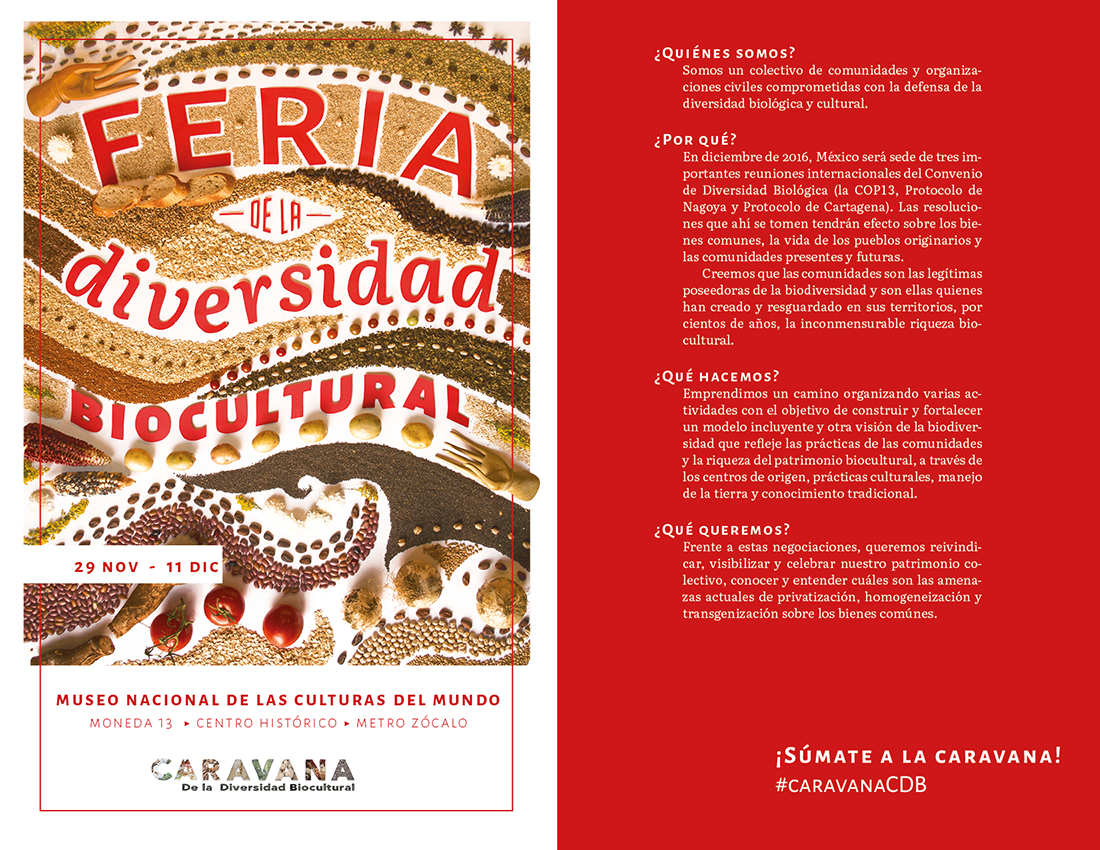 En diciembre de 2016, México será sede de tres importantes reuniones internacionales del Convenio de Diversidad Biológica (la COP13, Protocolo de Nagoya y Protocolo de Cartagena). Las resoluciones que ahí se tomen tendrán efecto sobre los bienes comunes, la vida de los pueblos originarios y las comunidades presentes y futuras.