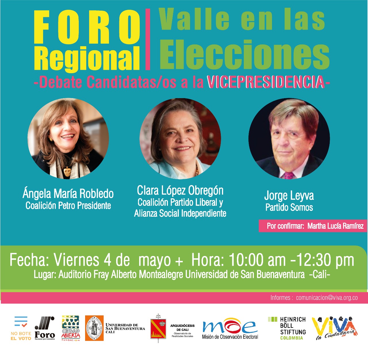Invitados e invitadas a participar en el Foro Regional Valle en las Elecciones - Debate candidatas /os Vicepresidencia