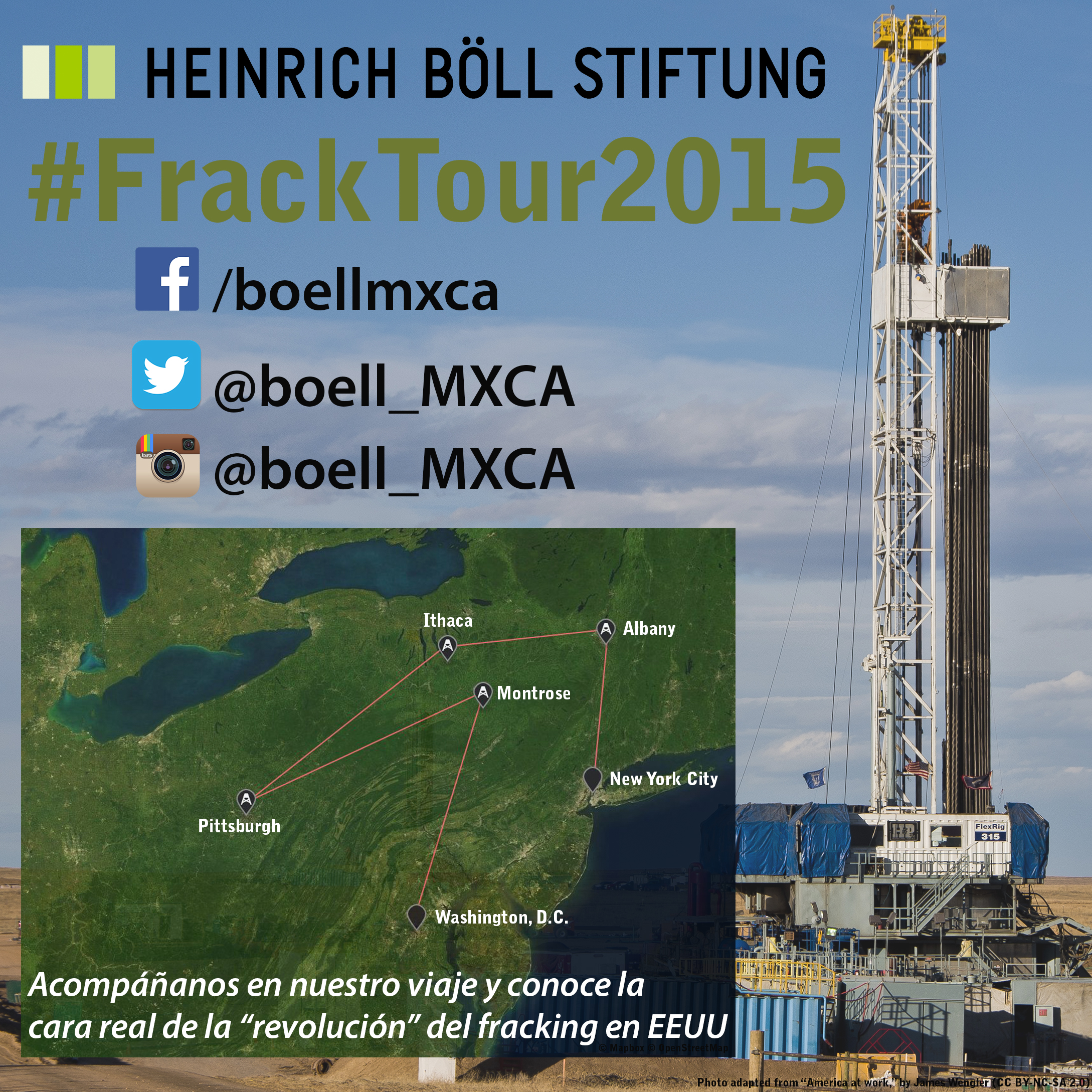 Del 7 al 11 de Septiembre se realizará el Tour de Fracking por Estados Unidos en el cual un grupo de colegas de la Fundación Heinrich Böll así como periodistas, investigadores, diputados y abogados de varios países del mundo conocerán tres regiones de EEUU donde se practica el fracking, conocerán los impactos de la industria del gas natural en las economías locales, la infraestructura local y en el medio ambiente. Las y los participantes asistirán a varias reuniones con funcionarios públicos, representantes de empresas y organizaciones de la sociedad civil para conocer los debates en torno al fracking en EEUU y llevarlos a sus países.