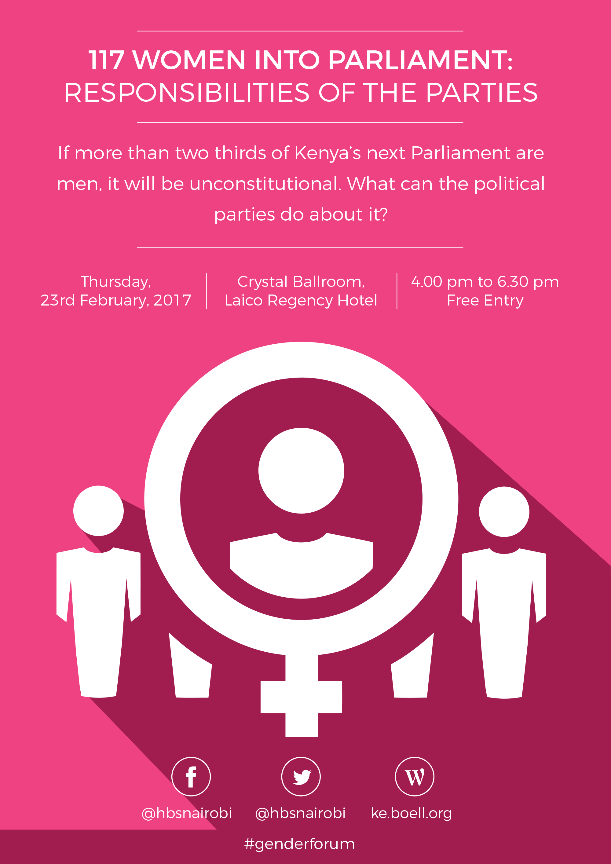 In the absence of affirmative action legislation, it is very likely that more than two thirds of the members of Kenya’s next parliament will be men. What can the political parties still do to mitigate this foreseeable constitutional crisis and demonstrate their commitment to women’s political representation?