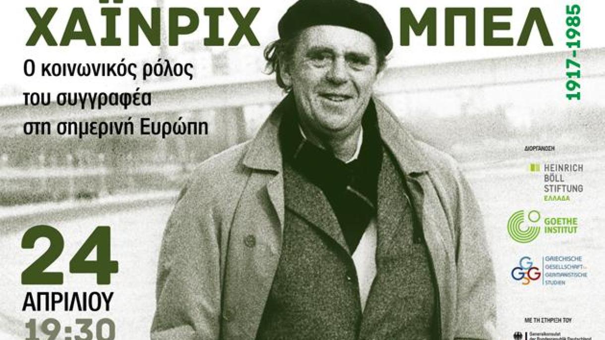 Anläßlich der 100. Wiederkehr von Heinrich Bölls Geburtstag (1917-1985) wollen die Heinrich Böll Stiftung Griechenland, das Goethe Institut Thessaloniki, die Griechische Gesellschaft für Germanistische Studien und das Generalkonsulats Deutschlands am 24. April 2017 Werk und Wirkung des Schriftstellers und Literaturpreisträgers würdigen - mit einer Diskussion zur Rolle des engagierten Schriftstellers in Europa heute.