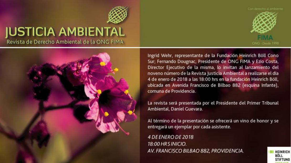 En el lanzamiento de la revista Justicia Ambiental IX, estará presente Ingrid Wehr, directora de la Oficina Regional Cono Sur de la Fundación Heinrich Böll, Fernando Dougnac, presidente de ONG FIMA y Ezio Acosta, director ejecutivo de la misma.