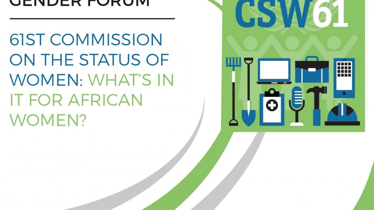This year the CSW 61 conference was held under the theme “Women’s economic empowerment in the changing world of work”. Before the official meeting in New York, the Africa Group through the AU put forward key priorities for a stronger and more inclusive language that centred on the recognition of multiple and intersecting forms of discrimination against all women and girls. Indeed a commentary by the Deputy Executive Secretary of the Economic Commission for Africa, Ms. Giovanie Biha, supported the notion of building consensus amongst African Women to ensure that, “Africa speaks with one loud voice on and for its issues especially gender and women’s issues”.
