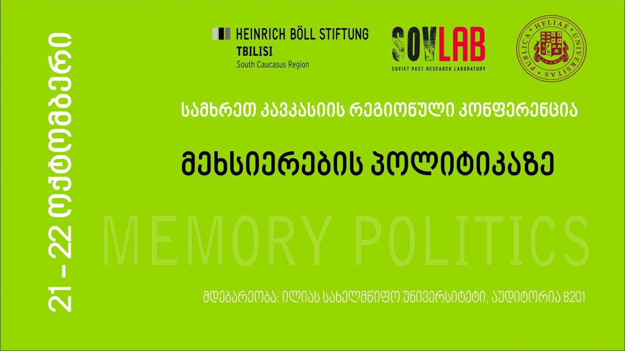 ჰაინრიჰ ბიოლის ფონდის თბილისის ოფისი - სამხრეთ კავკასიის რეგიონი, ილიას სახელმწიფო უნივერსიტეტთან და საბჭოთა წარსულის კვლევის ლაბორატორიასთან ერთად ატარებს სამხრეთ კავკასიის რეგიონულ კონფერენციას მეხსიერების პოლიტიკაზე. კონფერენციის მთავარი მიზანია იმსჯელოს მეხსიერების პოლიტიკაზე და განიხილოს მეხსიერების კვლევების და საბჭოთა წარსულის გადააზრების საკითხები სამხრეთ კავკასიის სამივე ქვეყანაში.