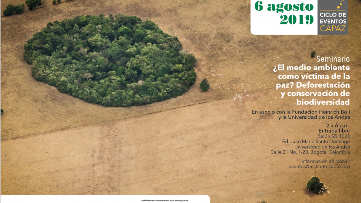 El Instituto Colombo-Alemán para la Paz – CAPAZ, la Universidad de los Andes y la fundación Heinrich Böll, Oficina Bogotá - Colombia invitan al seminario titulado "¿El medio ambiente como víctima de la paz? deforestación y conservación de biodiversidad".