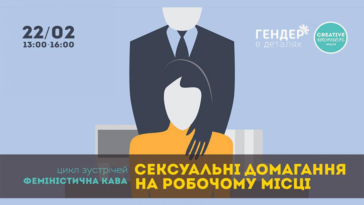 22 лютого о 13:00 у креативному просторі Creative Women Space (пров. Михайлівський, 9Б, домофон 64) запрошуємо у безпечному жіночому колі обговорити тему сексуальних домагань на робочому місці.