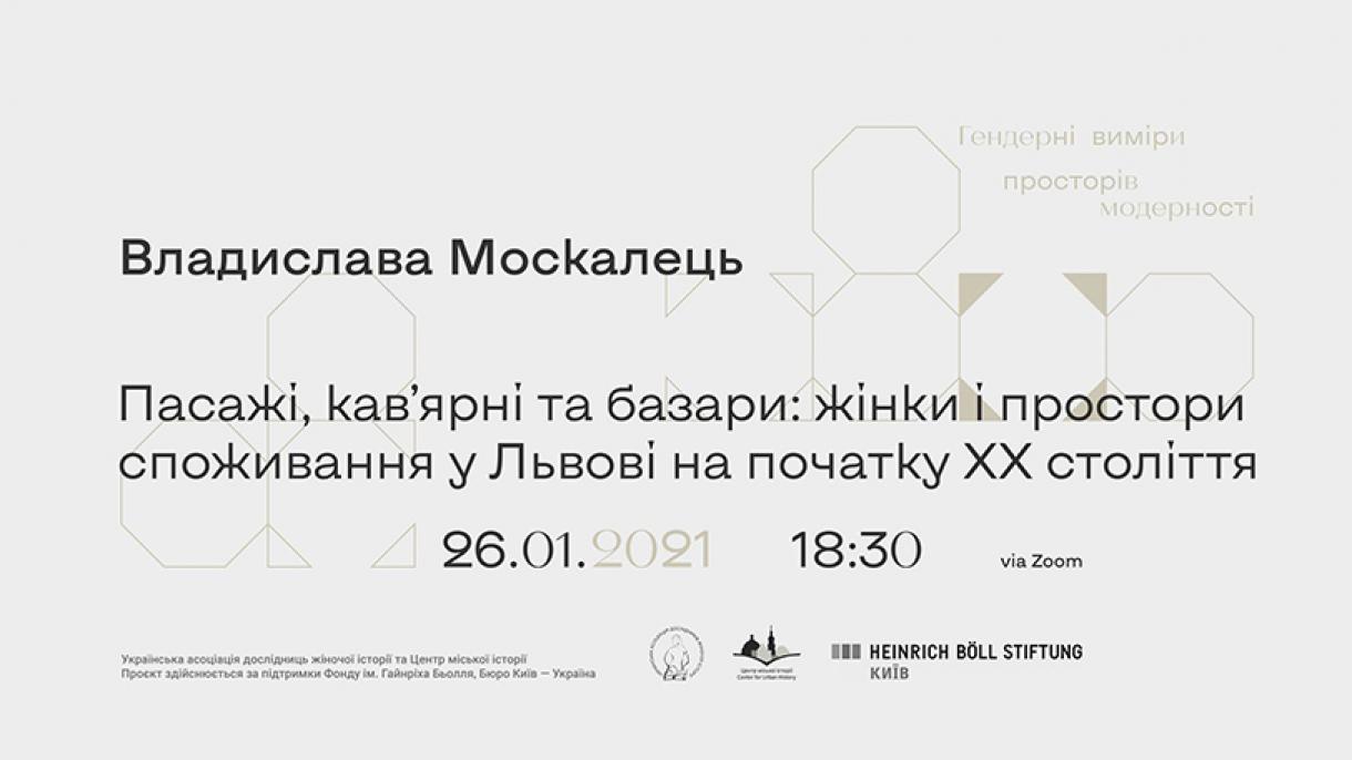 Запрошуємо на онлайн-лекцію Владислави Москалець «Пасажі, кав’ярні та базари: жінки і простори споживання у Львові на початку ХХ ст.», що є частиною лекційної програми «Гендерні виміри просторів модерності».